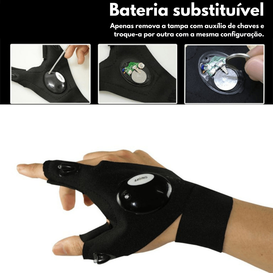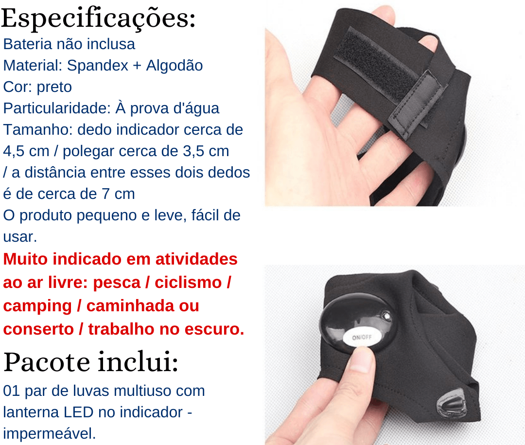 Par de luvas multiuso com lanterna LED no indicador - impermeável